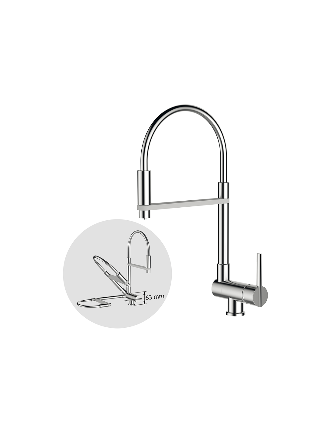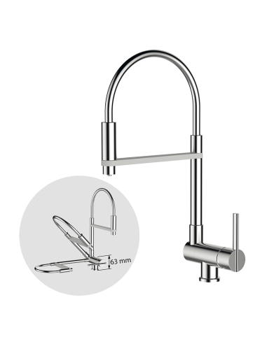 Hauteur 215mm au mousseur avec système GRB90°dans la manette ,qui évite le contact avec le mur bec giratoire