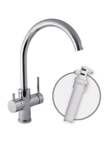 Mitigeur double pour eau du réseau et eau filtrée pour la cuisine