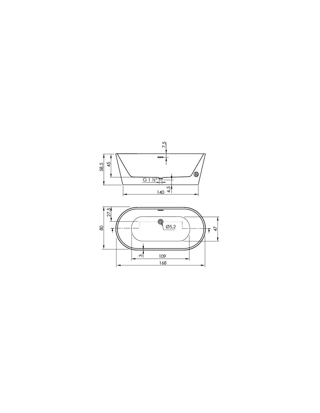 Baignoire acrylique en îlot ou murale avec bonde click-clac avec débordement intégré