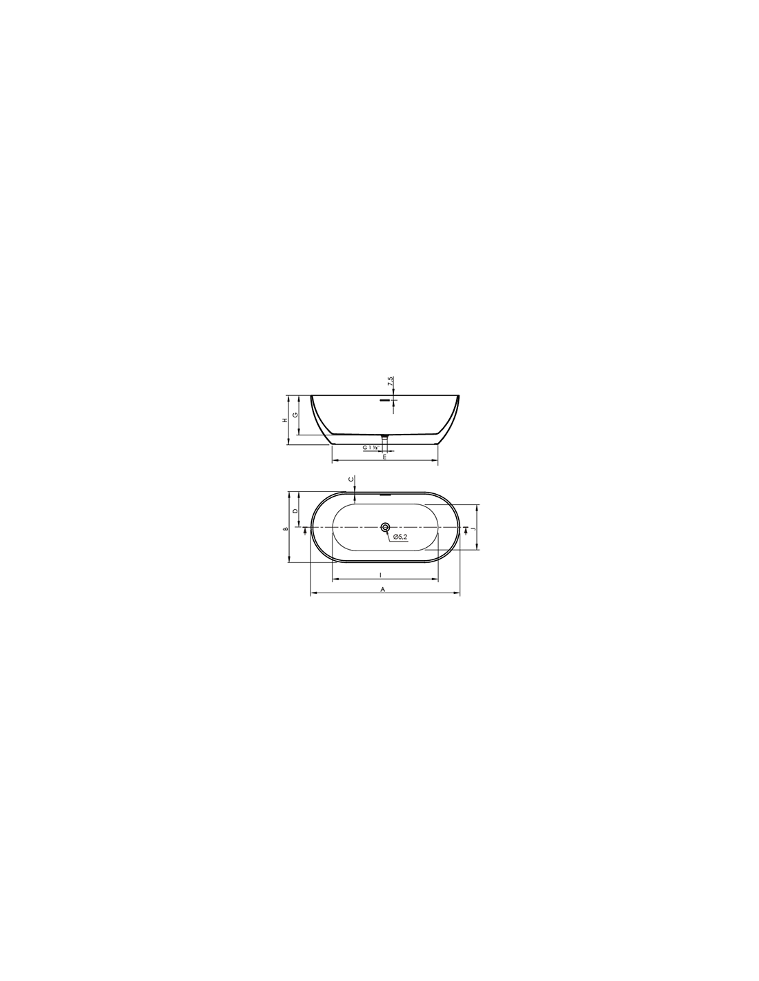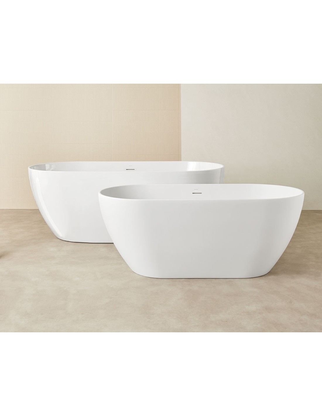 Baignoire acrylique en îlot avec bonde click-clac avec débordement intégré blanc brillant