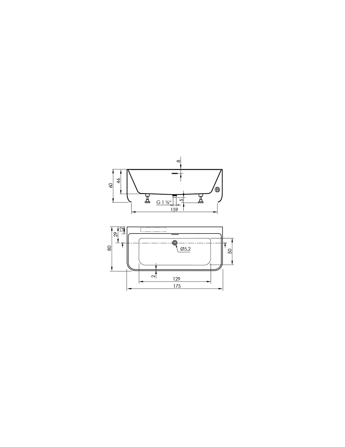 Baignoire acrylique murale avec bonde click-clac avec débordement intégré blanc brillant