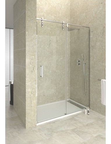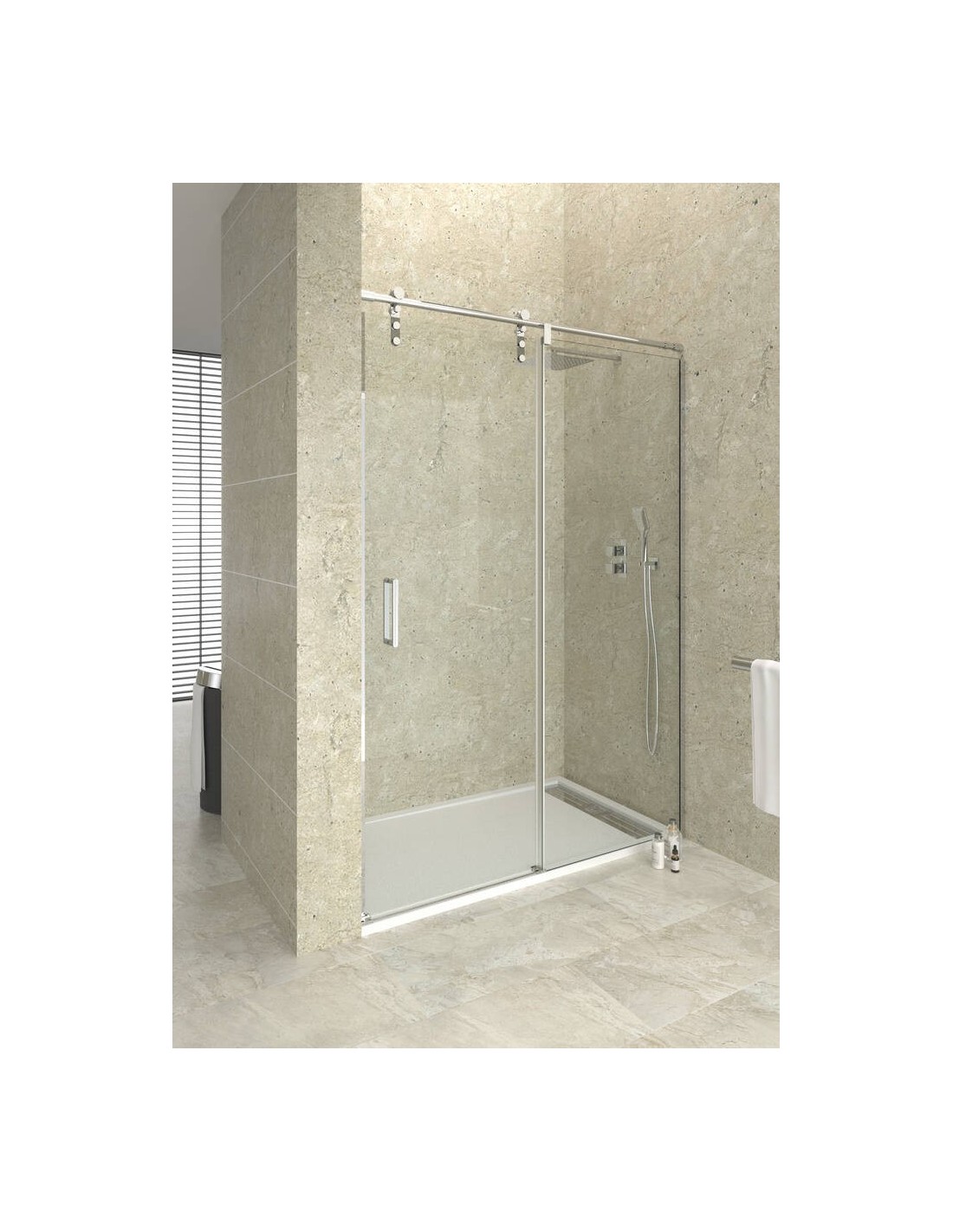 Sanitshop propose ce produit qui  appartient à la catégorie Parois de douche: coulissantes, frontale, en verre, de 2 feuilles, sans profilé inférieur, pour les receveurs de douche rectangulaire, de 90 à 99 cm de long, de 100 à 109 cm de long, de 110 à 119 cm de long, de 120 à 129 cm de long, de 130 à 139 cm de long, de 140 à 149 cm de long, de 150 à 159 cm de long, de 160 à 169 cm de long, de 170 à 179 cm de long, de 180 à 189 cm de long, avec verre transparent, avec profilés en acier inoxydable, avec traitement anti-calcaire, d' 1 porte, avec profilés de couleur chromée, de 8 mm d'épaisseur.