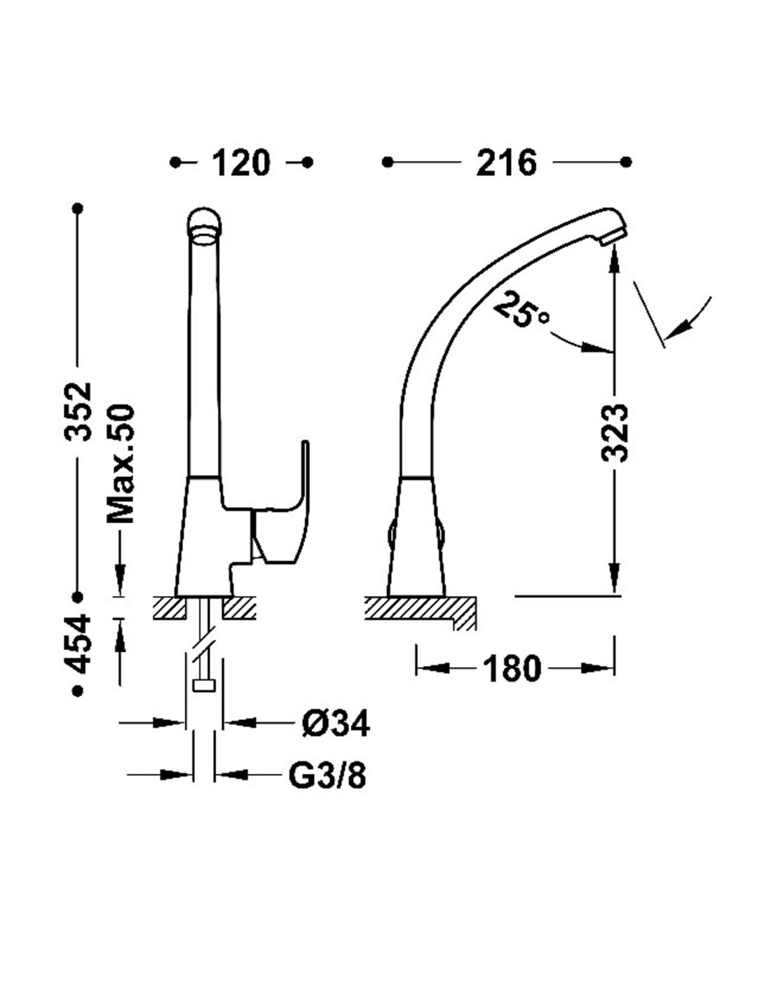Mitigeur pour cuisine avec flexibles d'alimentation G3/8