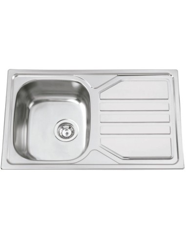 Sanitshop propose ce produit  qui appartient à la catégorie Éviers de cuisine: en acier inoxydable, avec égouttoir, encastrés sur le plan, de 71 à 90 cm (centimètres) de long, de couleur chromée, à 1 bac (cuve, vasque) et égouttoir, de style rustique, de forme carrée.