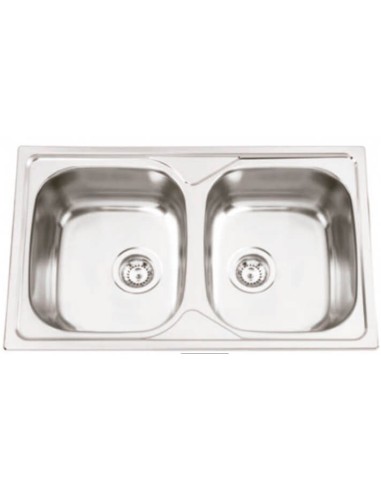 EVIER DE CUISINE EN INOX DOUBLE BAC -COLLECTION-OKI-AQUORE Ce produit appartient à la catégorie Éviers de cuisine: en acier inoxydable, avec égouttoir, encastrés sur le plan, de 71 à 90 cm (centimètres) de long, de couleur chromée, double, 2 bacs (cuve, vasque), de style rustique, de forme carrée.