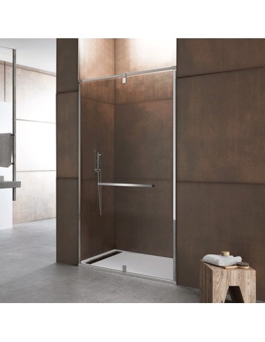 Sanitshop propose ce produit  qui appartient à la catégorie Parois de douche: rabattables, frontale, en verre, de 1 feuille, avec quatre profilés ou plus, pour les receveurs de douche rectangulaire, de 100 à 109 cm de long, de 110 à 119 cm de long, avec verre transparent, avec traitement anti-calcaire, d' 1 porte, avec profilés de couleur argent, de 8 mm d'épaisseur.