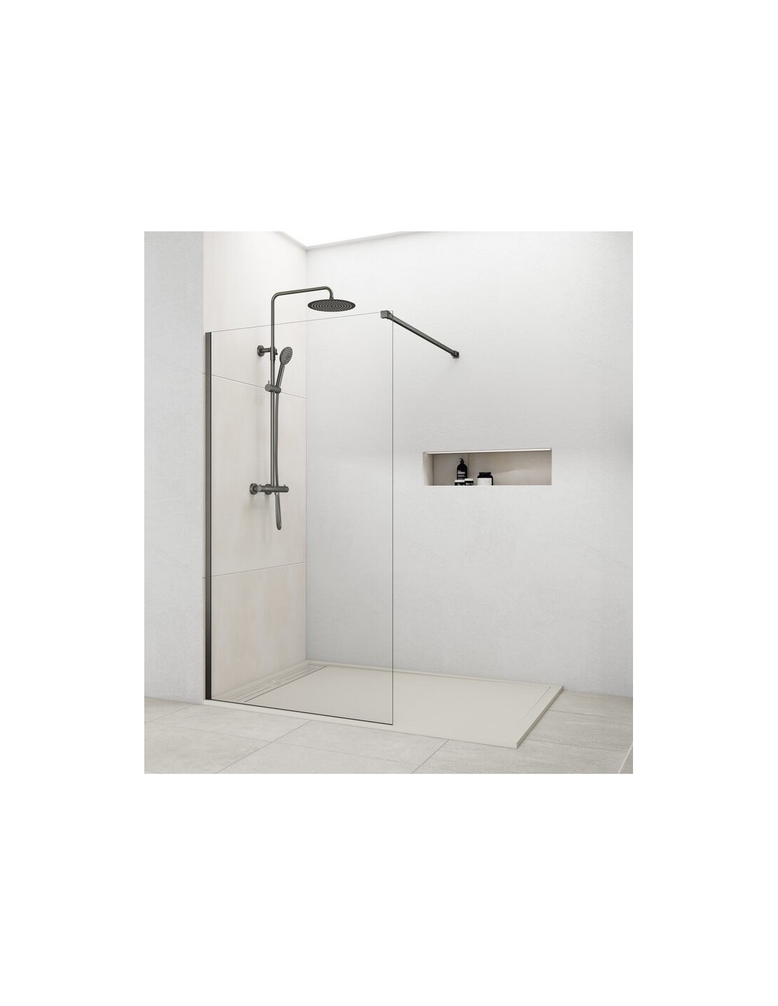 • Doté d'un support en caoutchouc afin que le verre ne repose pas directement sur le receveur de douche.