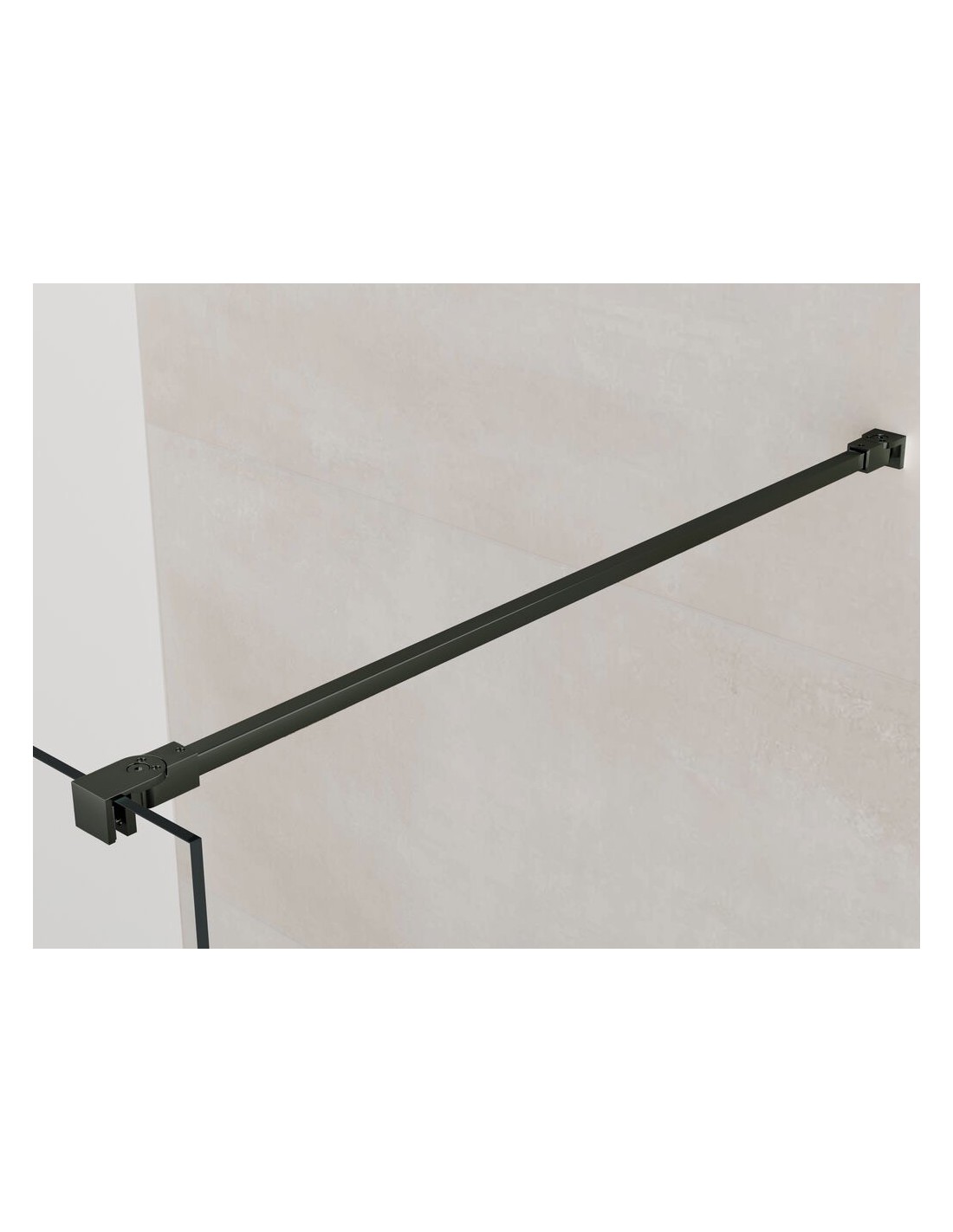 • Barre support murale pivotante 120 cm (90°/45°) : barre carrée avec support contre la paroi et contre le mur. Les 2 supports sont pivotants pour s'adapter à tous les angles. Il est possible de couper la barre à la longueur souhaitée.