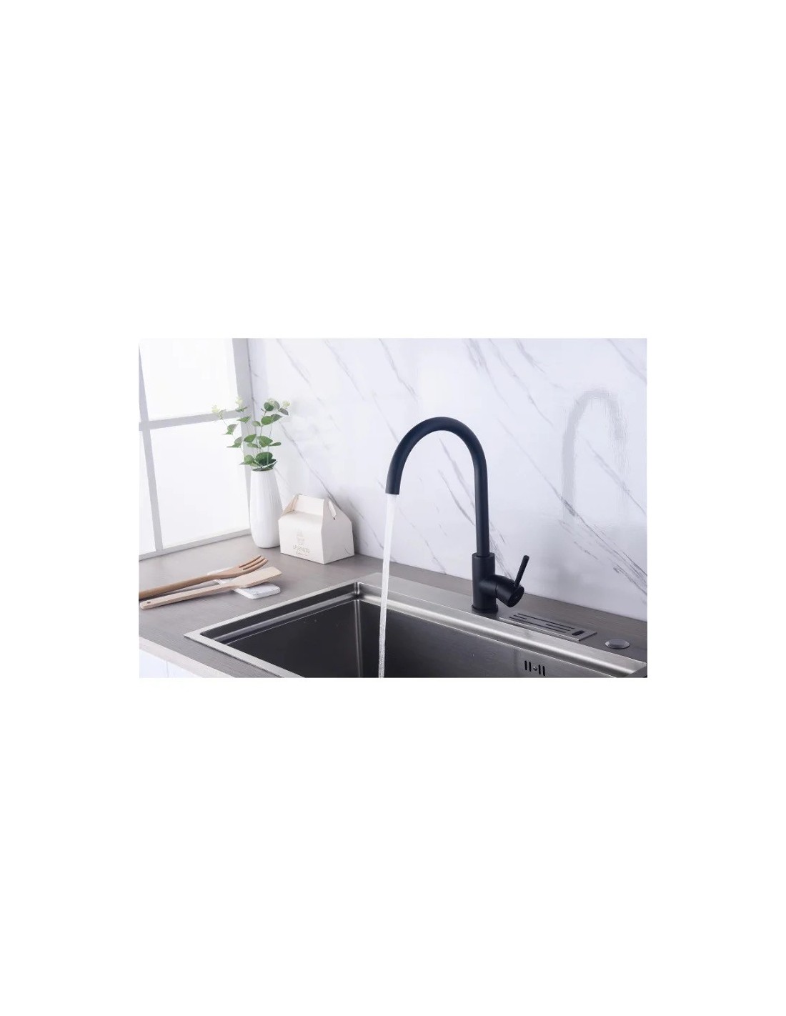 Ce produit appartient à la catégorie Robinetterie de cuisine (robinets pour éviers): éco-efficace (avec régulateur de débit, avec arrêt automatique pour économiser l\'eau), avec bec pivotant, de couleur noire, de rebord, à bec haut , mitigeur (monobloc), en laiton, de style classique.